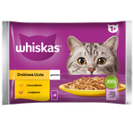 WHISKAS Adult Saszetki 4 x 85g Drobiowa Uczta Mokra Karma Dla Dorosłego Kota w Galaretce Kawałki z Kurczakiem i Indykiem