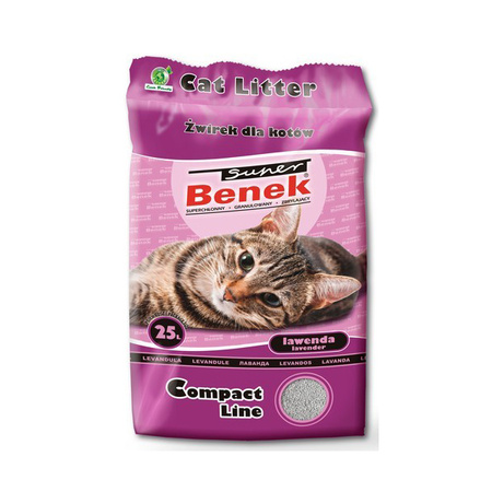 Super Benek Compact Lawenda 25L - Żwirek Bentonitowy dla Wszystkich Kotów
