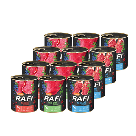 12x400g Rafi Mokra Karma Dla Dorosłych Psów 3 Smaki W Puszce Zestaw