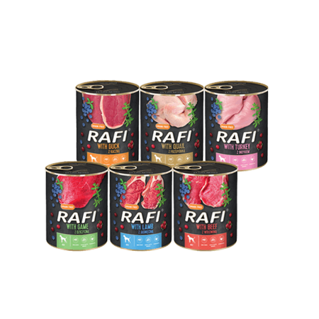 Rafi Mokra Karma dla Dorosłych Psów 6 Smaków Puszka Zestaw 6 x 400 g