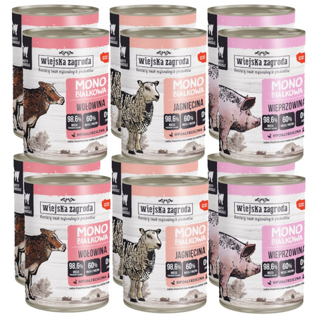 Wiejska Zagroda Monobiałkowa Karma Mokra Dla Kota Mix 3 Smaków Bez Drobiu 98,6% Mięsa 12x400g