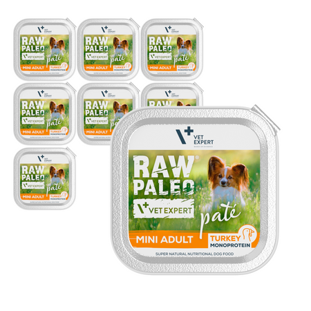 Raw Paleo Pate Mini Adult Turkey Tacka 8x150g Mokra Karma Dla Psów Małych Ras z Indykiem