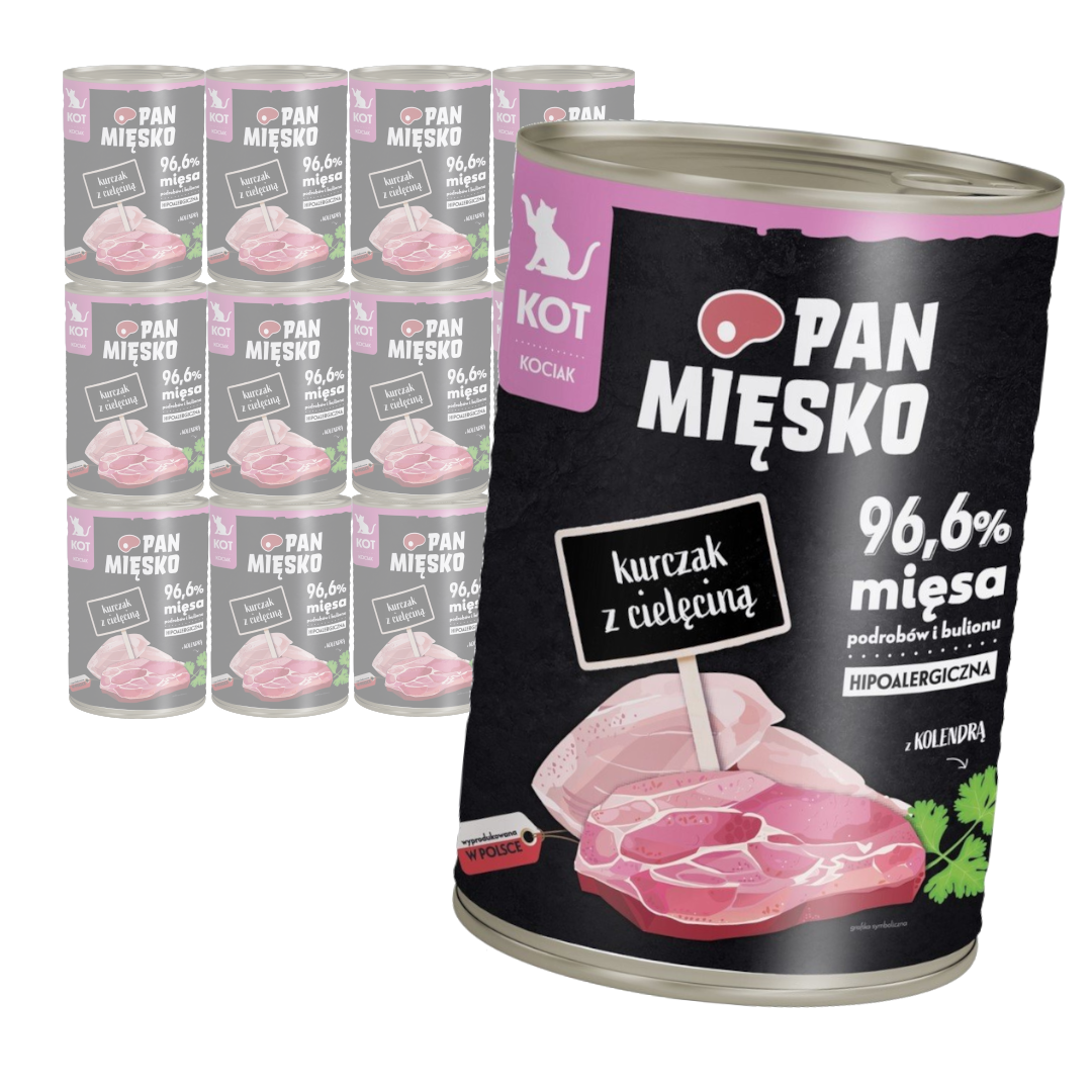 Pan Mięsko Hipoalergiczna Mokra Karma Dla Kociąt Kurczak Z Cielęciną 12x400g