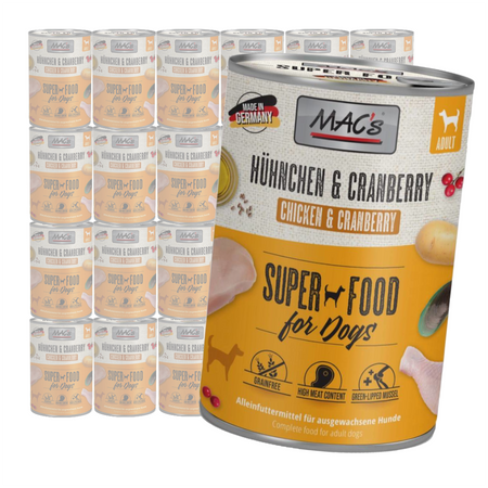 MAC's Dog Bezzbożowa Mokra Karma Z Kurczakiem I Żurawiną 400g Dla Psa Na Stawy Drogi Moczowe Infekcje (24 szt.)