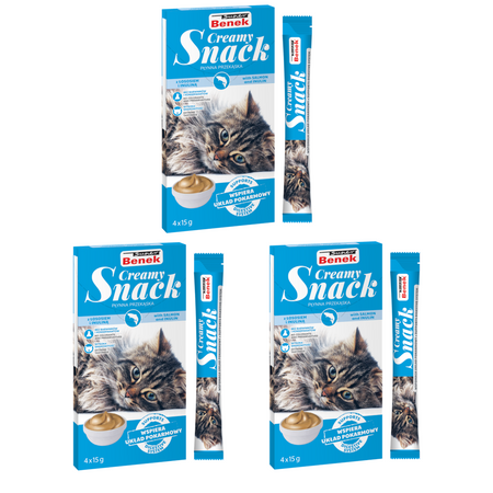 Super Benek Creamy Snack 60g (4x15g) Płynna Przekąska Dla Kotów Z Łososiem I Inuliną (3 szt.)