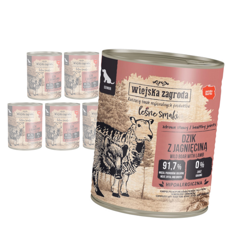 Wiejska Zagroda Leśne Smaki 6x800g Mokra Karma Dla Starszego Psa Z Dzikiem I Jagnięciną