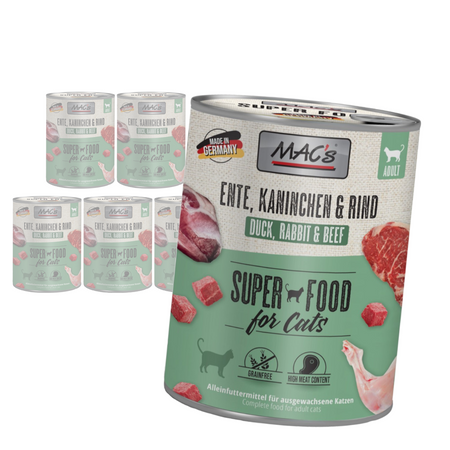 MAC's 6x800g Bezzbożowa Mokra Karma Dla Kota Kaczka Królik Wołowina