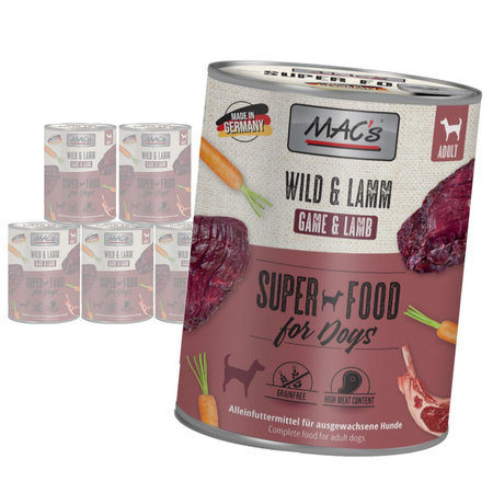 MAC's Dog 6x800g Bezzbożowa Mokra Karma Dla Psa z Dziczyzną i Jagnięciną