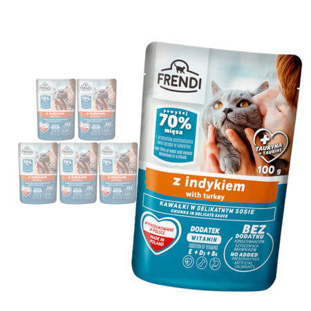 Frendi Kawałki z Indykiem w Sosie 6x100g Mokra Karma Dla Dorosłych Kotów Wszystkich Ras