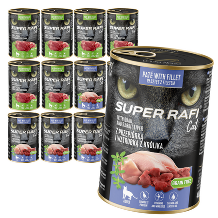 Super Rafi Cat 12x400g Bezzbożowa Mokra Karma Dla Kotów Mix 2 Smaków