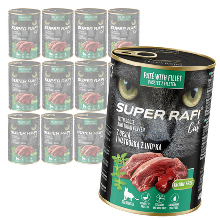 Super Rafi Cat 12x400g Bezzbożowa Mokra Karma Dla Kotów Sterylizowanych Z Gęsią I Wątróbką Z Indyka
